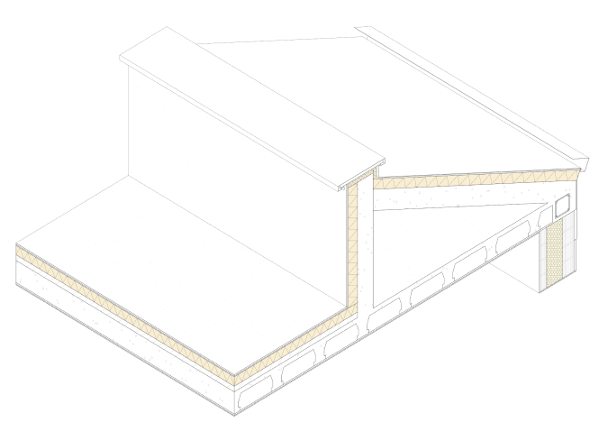 La riqualificazione del fabbricato aveva un duplice obiettivo: migliorare l’efficienza energetica e ridurre il rischio sismico. Per l’efficientamento energetico, si è operato sia sulle facciate che sulle coperture. Considerata la morfologia dell’edificio e la volontà di mantenere le sue caratteristiche estetiche, si è optato per materiali isolanti a basso spessore, come l’intonaco termoriflettente, e per l’insufflaggio di materiale termoisolante nell’intercapedine d’aria delle tamponature.