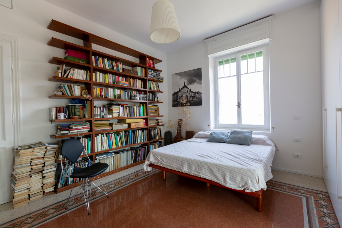 L’attico, unico all’ultimo piano di un villino del 1927, rimaneggiato negli anni, l’unica camera con pavimento originale decorato era un piccolo salotto con camino