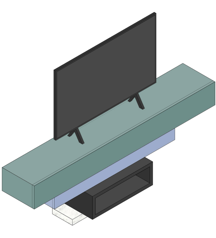 Il mobile della televisione in marmo e legno laccato, sempre su disegno, è nato come un omaggio a Ettore Sottsass