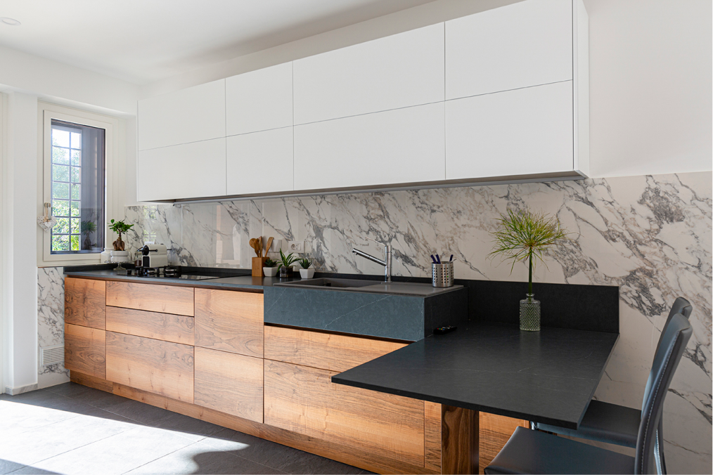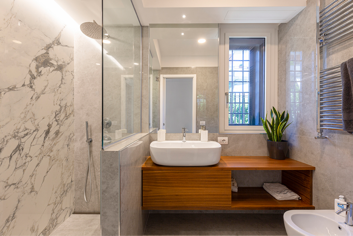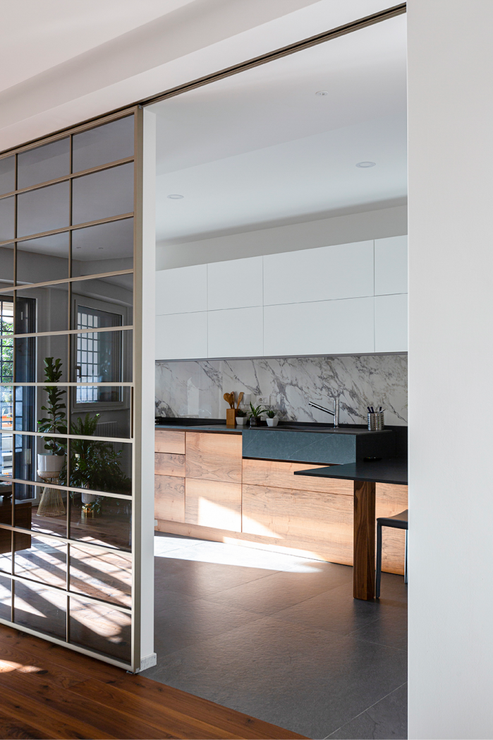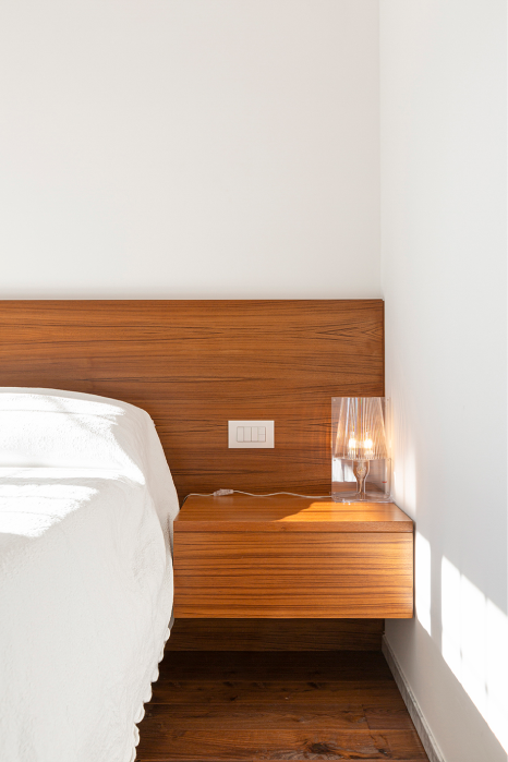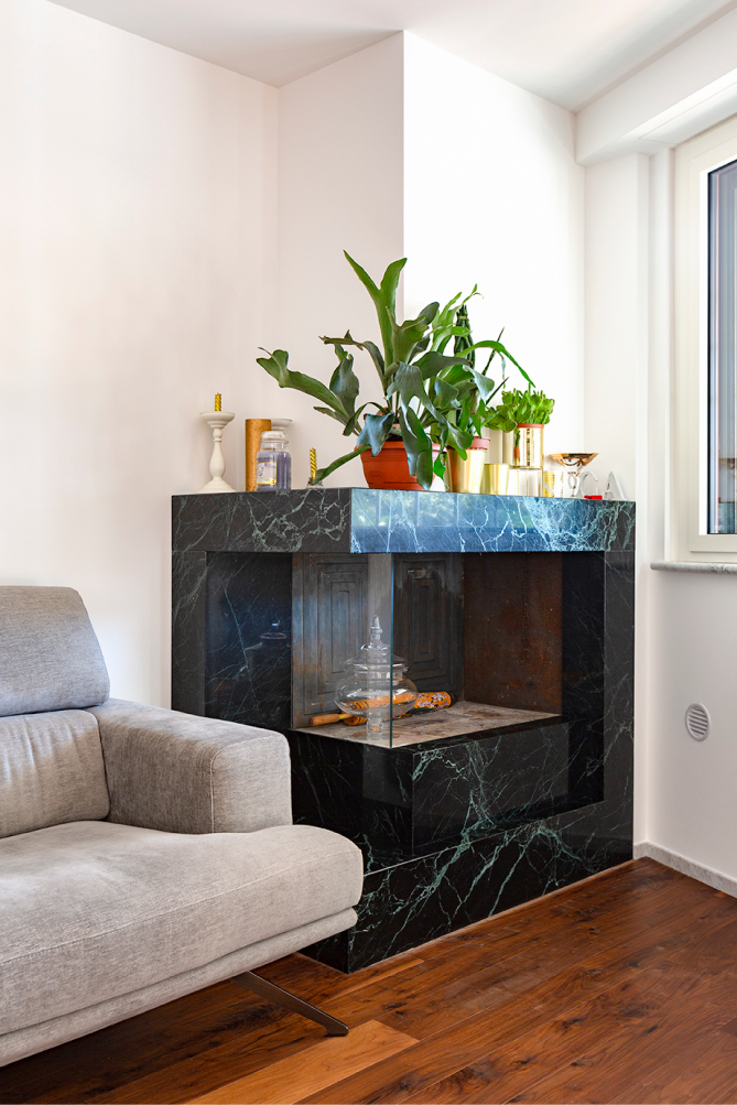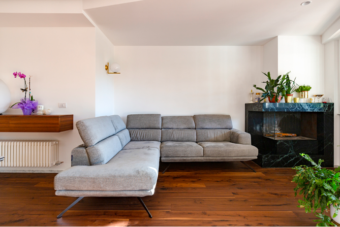 L’appartamento di recente costruzione, con delle linee ispirate all’architettura organica romana, ha subito un restyling stilistico finalizzato alla valorizzazione di alcune scelte architettoniche dei progettisti del fabbricato e ad un aggiornamento d’uso delle zone giorno e notte
