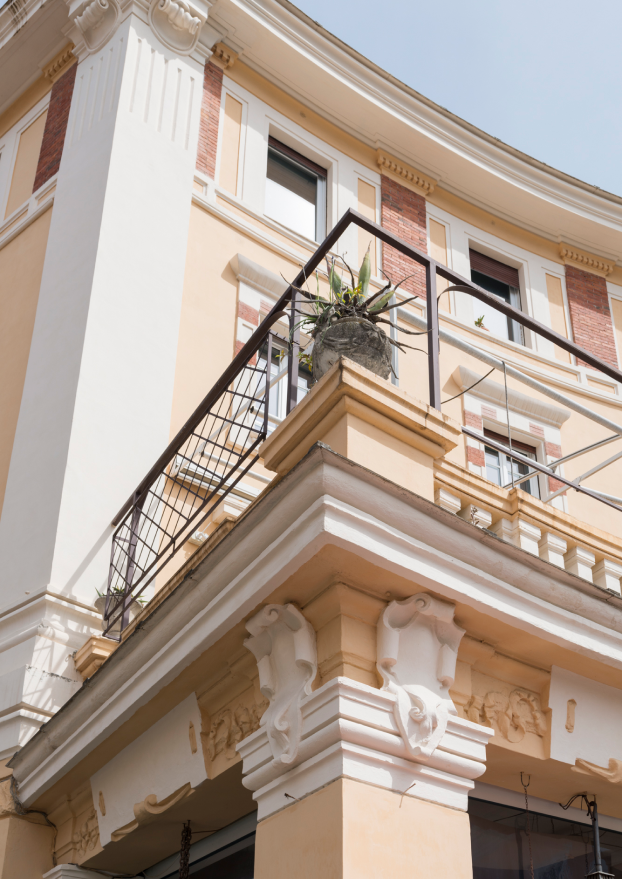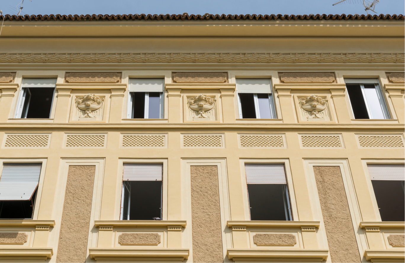 I restauri conservativi sono messi in atto con materiali e tecniche idonee per fabbricati storici, in conformità alle direttive delle soprintendenze comunale e statale, con intonaci di calce idraulica naturale privi di cemento, malte modellabili, rasature a base di calce, con tinteggiature ai silicati o a base di calce, in conformità con le tecnologie costruttive originarie. Tutti i lavori muovono dall'analisi del degrado e con consolidamento degli intonaci attraverso tecniche compatibili, prodotti a base minerale o iniezioni di malte idrauliche, con particolare attenzione alla conservazione di tutte le componenti. I balconi originali in graniglia o in cementine laddove originali e con qualità architettonica, sono stati restaurati; laddove non è stato possibile il restauro, sono stati ricostruiti da artigiani utilizzando le stesse tecniche originali. Sono stati inoltre effettuati saggi stratigrafici, calchi e opere di restauratore, in accordo con la Soprintendenza statale e capitolina presso le quali sono stati fatti accessi agli atti, richieste documentali e dalle quali sono stati ottenuti i pareri preventivi.